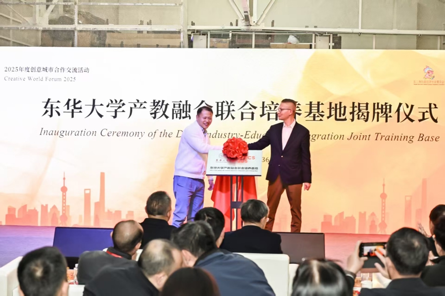 今天,2025创意城市合作交流活动在上海FICS新华365海派园举办,以“区域合作・智汇创变・育见未来”为主题。现场,东华大学与上海飞科斯文化创意发展有限公司、上海费思教育科技有限公司共同为产教融合项目揭牌,并举行第三届AIGC创意设计大赛开幕式。